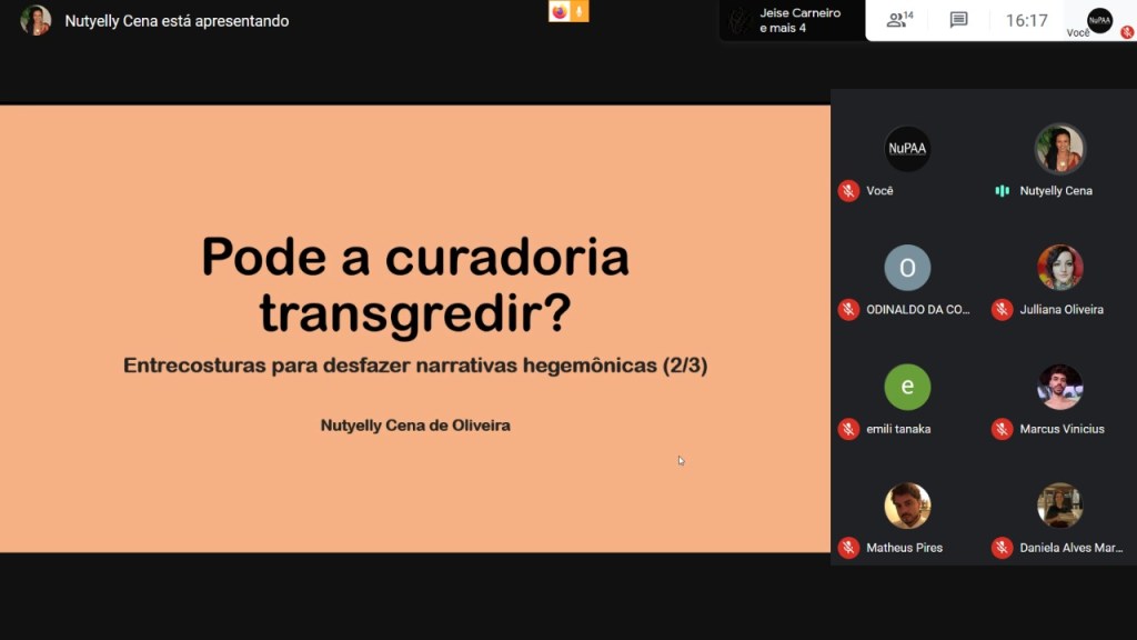 Pode a curadoria transgredir? (2/3) – Entrecosturas para desfazer narrativas hegemônicas, das 16 às 17h30, com Nutyelly Cena.