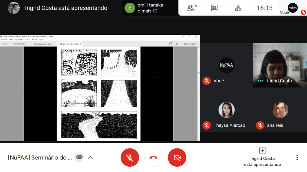 No 10° Seminário de Pesquisa em Arte e Autobiografia do NuPAA, que aconteceu no dia 3 de maio de 2021, a mestranda do Programa de Pós-Graduação em Arte e Cultura Visuais, Ingrid Costa, apresentou processos e resultados de sua pesquisa artística sobre Econarrativas Visuais.