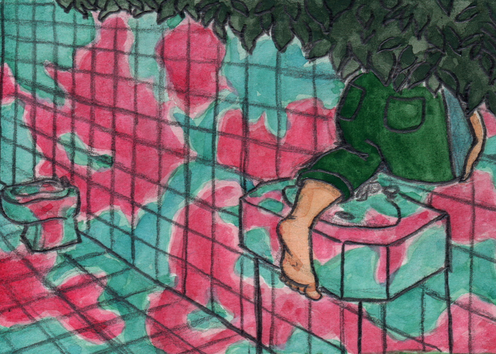 O título da minha pesquisa é também título da minha série de desenhos e zines que desenvolvo desde 2020, e nome de um lugar fictício. Apresento os processos que me trouxeram até este momento da pesquisa, envolvendo deslocamentos, contato com familiares, memórias e provocações sobre viagem no tempo. Traço um paralelo entre arte e física na visão sobre viagem no tempo, abordando como uso a materialidade para refletir questões sobre o tempo. Exponho minha produção, mostrando elementos e partes do Labirinto.