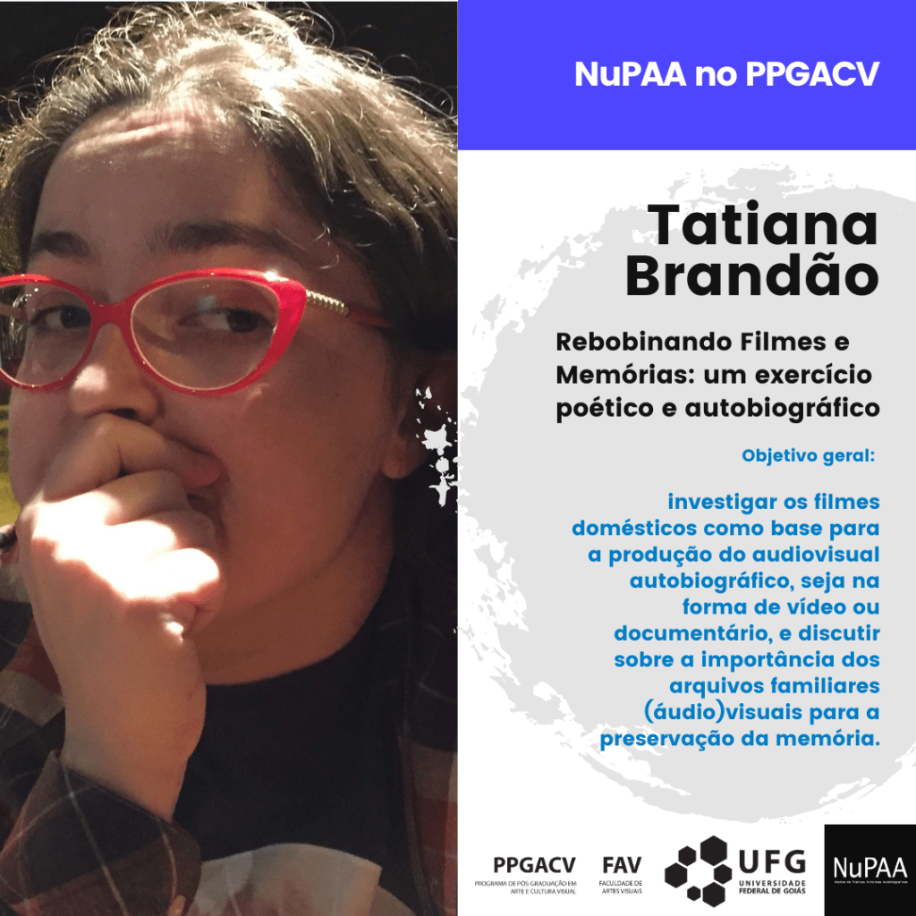 O NuPAA dá as boas-vindas à Tatiana Brandão de Araújo que, em setembro deste ano, iniciou seu percurso como pesquisadora de pós-doutorado no NuPAA e na linha de pesquisa Poéticas Artísticas e Processos de Criação do Programa de Pós-Graduação em Arte e Cultura Visual – #PPGACV da #FAVUFG, sob supervisão da professora Manoela dos Anjos Afonso Rodrigues.