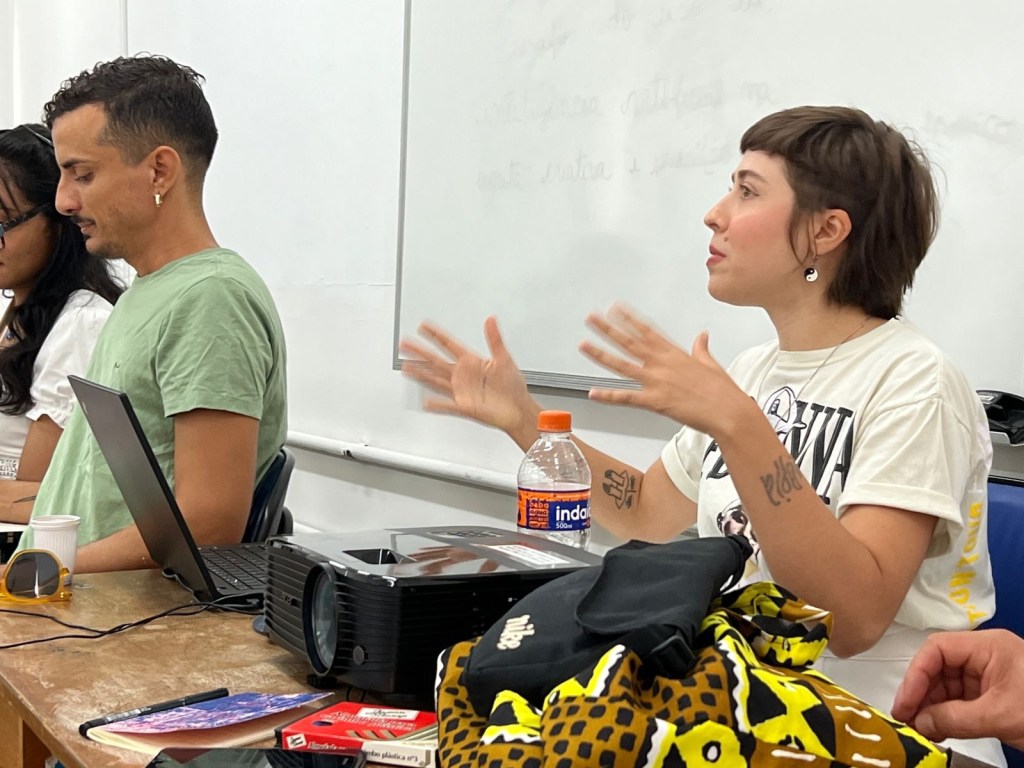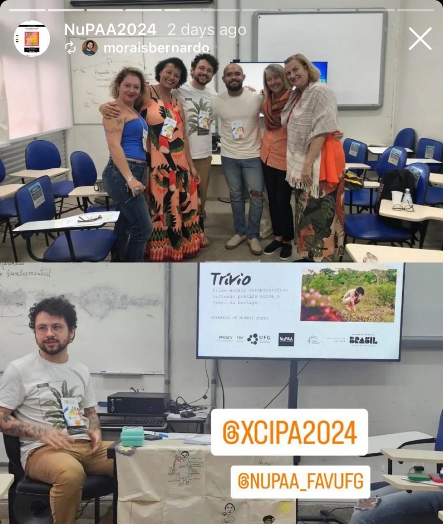 Denise Jácomo, mestranda e membro do grupo de pesquisa da Linha B do PPGACV também esteve presente no evento apresentando o trabalho “Revivescendo memórias a partir de fotografias e experimentações (auto)biográficas entre o saber, o lugar e a história”