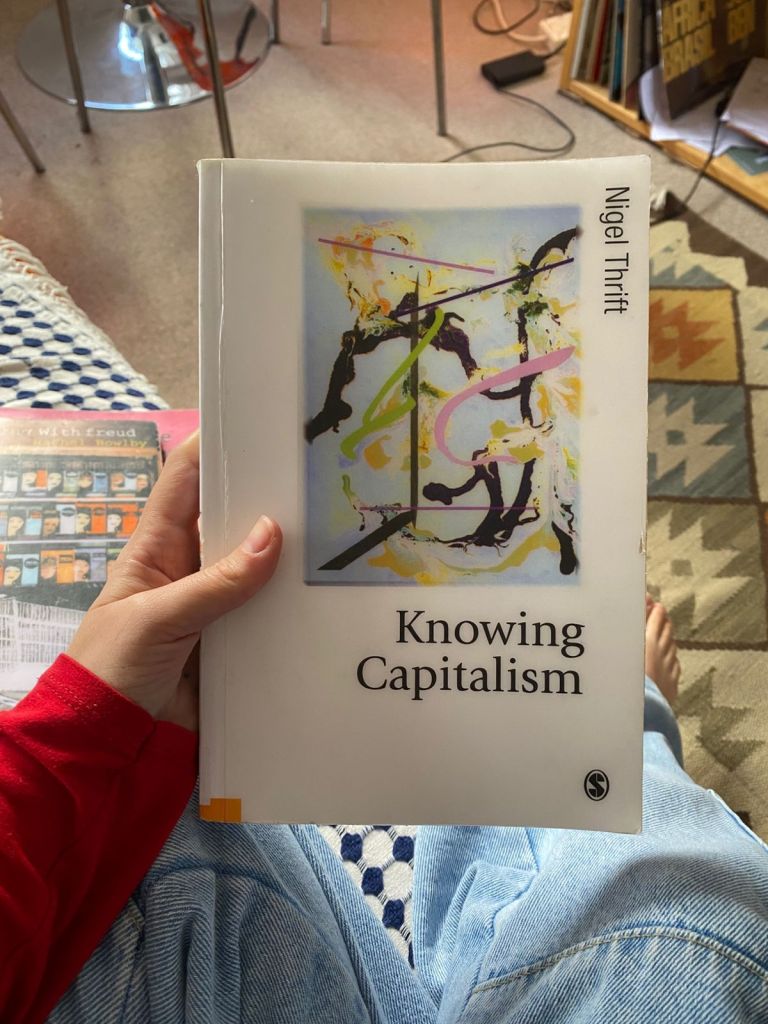 Encontrei. Eram muitos (fotos distribuídas por aqui). Levei para casa três: “Shopping with Freud”, de Rachel Bowly, “Gender and the politics of time”, de Valerie Bryson, e “Knowing Capitalism” , de Nigel Thrift.