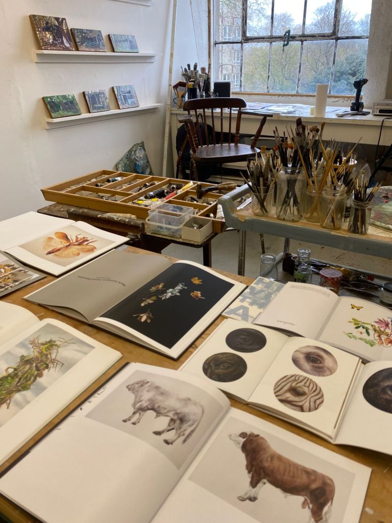 Estava indo para o ateliê do professor-artista Mark Farmington. 15 minutos de caminhada depois de descer na estação Mile End, em Hackney. Meu celular, com 20% de bateria. Levei um carregador portátil, então estava tranquila. Depois, descobri que ele também estava sem bateria. Risos.
